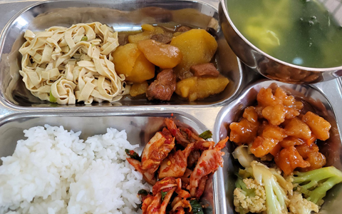 - 매일 3식 육류, 생선류, 채소류, 과일 디저트를 포함한 한식, 중식이 함께 제공되며 저녁 점호시 간식이 제공됩니다.